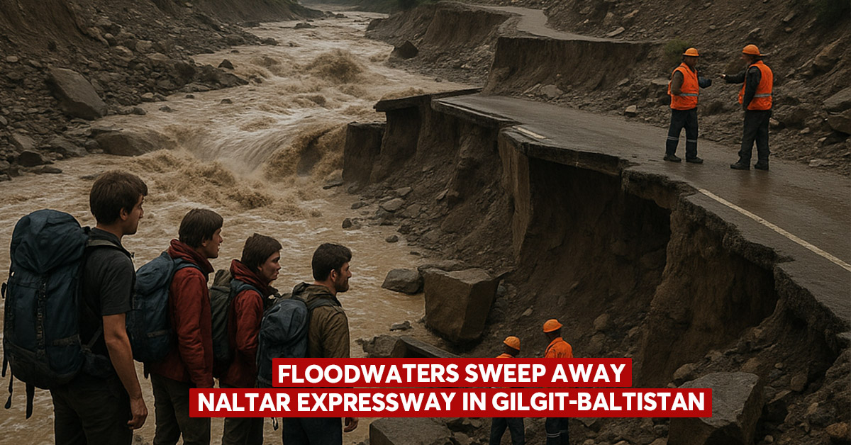 Severe floods in Gilgit-Baltistan (GB) have washed away a major portion of the Naltar Expressway, leaving tourists stranded and cutting off access to several key areas. The destruction has not only disrupted traffic but has also hampered ongoing relief and rescue operations in the region.